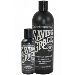НОВО!!! Диамантена серия шампоан Saving Grace изключително добре премахва петна от урина. Страхотно почистващ и ароматизиращ козината. Не изсушава козината , не премахва естествените масла от кожата, съдържа много овлажняващи и хидратиращи съставки. Премахва заплитанията и статичното електричество от козината. Изключително нежен към кожата подходящ за всякакви породи, дори и най-капризните!